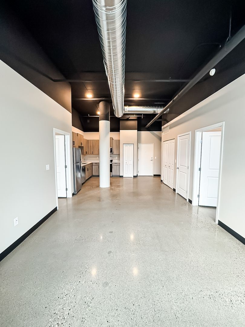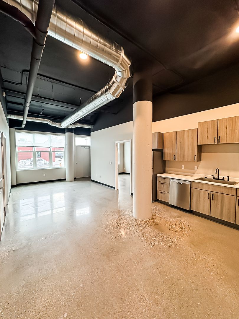 This building has a unique industrial feel including concrete floors and pillars, exposed duct, and open spaces. The 1919 Flats is proud of its industrial style apartments as being the quietest apartment in all of North Fargo due to cement floors and ceilings.