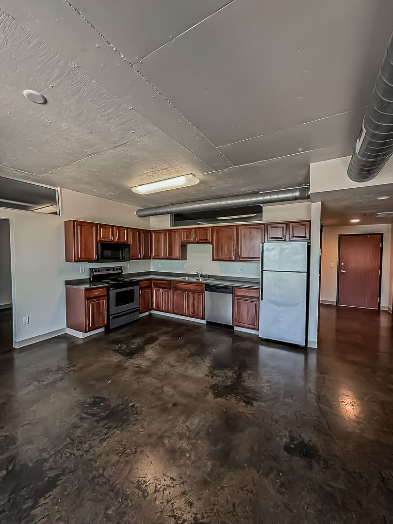 This building has a unique industrial feel including concrete floors and pillars, exposed duct, and open spaces. The 1919 Flats is proud of its industrial style apartments as being the quietest apartment in all of North Fargo due to cement floors and ceilings.