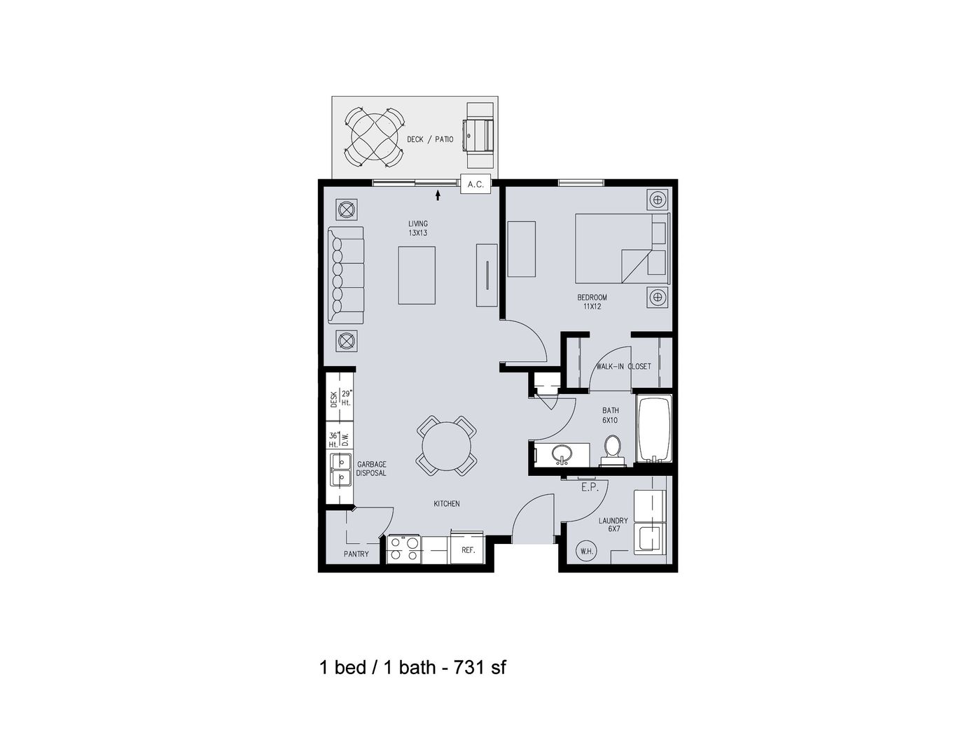 1 Baths | 731 Sq. Ft.